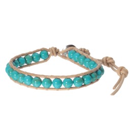 チャン・ルーターコイズカラーストーンラウンドビーズレザーブレスレット