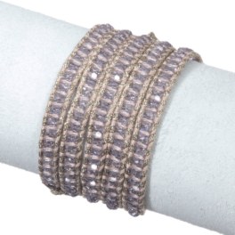 スモーキーモーヴカラーのスワロフスキー社製クリスタルガラスのファセットビーズを連ねた、上品で落ち着いた印象のラップブレスレットです。