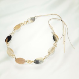 チャン・ルーハノイコレクション水牛マルチカラーオーバルモティーフコードネックレス