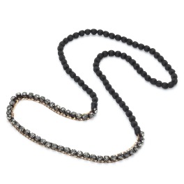 幅7.5mmUPのラピスラズリのラウンドビーズの連と、チェーンの連を組み合わせた2連デザインのブレスレットです。