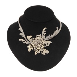 大小異なるサイズの繊細なレースのモティーフを組み合わせた、ロングネックレス、ブレスレット、イヤリングまたはピアスの3点セットです。