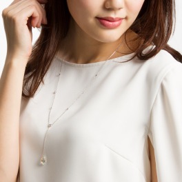 スワロフスキー社製クリスタルガラスのオーロラボレーロカラーのドロップモティーフを、Yデザインの先端に1粒あしらったロングネックレスです。