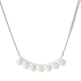 カーブをつけた地金のパーツに樹脂パールを計7粒あしらったロングネックレスです。■デザイン:トレンドの横ラインのデザインに、樹脂パールで当ブランドらしいアレンジを加えた、ふだんのコーディネイトに取り入れ…