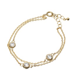 ボン・サンスCZゴールドカラーステーションデザイン2連ブレスレット