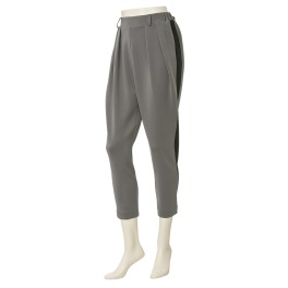 身頃脇部分にほどこしたラインがトレンド感のあるパンツです。スポーティーながらも、落ち感のある素材と美しいシルエットが上品なエレガントさを演出。