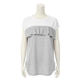 胸元にほどこした大きめのフリルがふんわりと揺れる、大人かわいいチュニックプルオーバーです。コーディネイトしやすいバイカラーデザインで、裾両脇にタックをほどこし立体感をプラス。