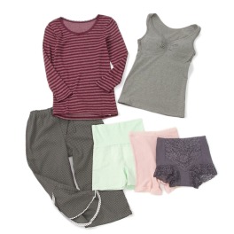 【商品構成】★必ず入るアイテム・ボーダー八分袖インナー:1点★その他アイテム・カップ付プルオーバー、七分丈ボトム、フード付プルオーバー、ノンワイヤーブラ、フリーカットショーツ、ノンワイヤーキャミブラ…