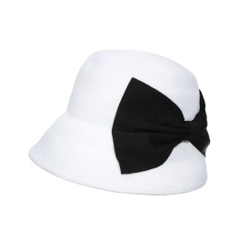 大きなリボンを一つサイドに大胆にあしらった、ペーパーブレードクローシュです。 紫外線遮蔽率は、ホワイトが97%以上、ベージュが99%以上で、A波・B波含めUVカットを備えています。