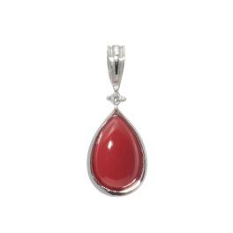 血赤珊瑚&ダイヤモンドペアカボションペンダントトップ