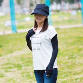 【商品構成】・手袋・グローブホルダー伸縮性と接触冷感に優れ、しかも活動的な指なしタイプのUVカットロンググローブに、おしゃれなグローブホルダーを組み合わせてのご紹介です。
