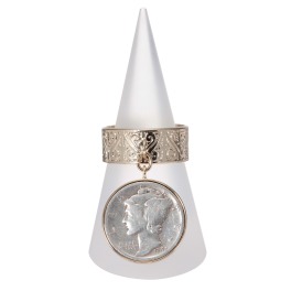 1916〜1945年に発行されたアメリカのマーキュリー・ダイムコインを使用したリングです。■デザイン:伝統的な自由のシンボルとされる、フリジア帽を被った女神が描かれています。