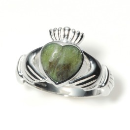 ハートシェイプのコネマラマーブル(岩石/サーペンティン、他)、シルバーでかたどった両手と王冠を組み合わせた独特なデザインのクラダーリングです。
