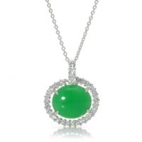 ラウンドカボションの本翡翠をセンターに1石配し、その周りにCZをあしらった、シンプルでクラシカルなペンダントです。