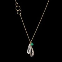 スモーキークォーツ、ロッククリスタルクォーツ、グリーンカルセドニーを組み合わせたロングペンダントです。