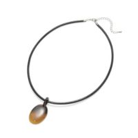 オーバルカボションの水牛素材を使用したコードペンダントです。 ■デザイン: 水牛素材のナチュラルな飴色を活かしたオーバルカボションのトップに、合成皮革のコードを組み合わせました。