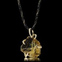 七翔珠18K ゴールデンルチルクォーツ&ダイヤモンド&ブラックスピネルデザインロングペンダント<鑑別