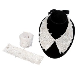 メルレットスパンコール&ホワイトレースビーディングリボンネックレス&ブレスレット2点セット