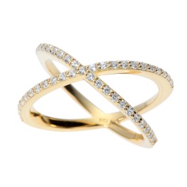 “スワロフスキー社”の持つ技術を駆使してマシーンカットをほどこしたラウンドブリリアントカットのCZ(スワロフスキージルコニア)を、贅沢にも計約45石もあしらったクロスデザインリングです。