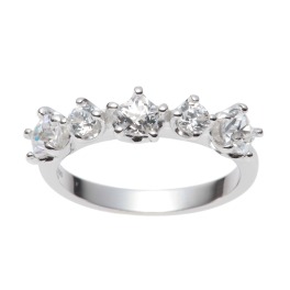 <ロジウムコート>スワロフスキージルコニアペンタゴン&ラウンドブリリアントカットラインデザインリング