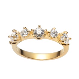 <ゴールドコート>スワロフスキージルコニアペンタゴン&ラウンドブリリアントカットラインデザインリング