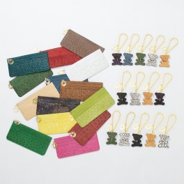 シュリンク型押しをほどこしたソフトな牛革と、当ブランドオリジナルのプリントをほどこしたダイヤモンドパイソン革を組み合わせたバッグチャームです。