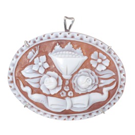 シルバーシェルカメオペンダントブローチ“フラワーハーモニー”