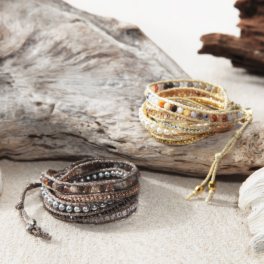異素材をミックスしてお作りしたラップブレスレットです。当ブランドが得意とするクリエイティブな素材使いによって生み出された、ファッショナブルなデザインに注目。