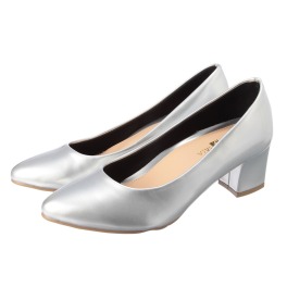 ■外側:ムラ感のあるメタリック調素材が高級感を演出します。甲部分に面ファスナー仕様のベルトを配しており、スムーズな着脱が可能。