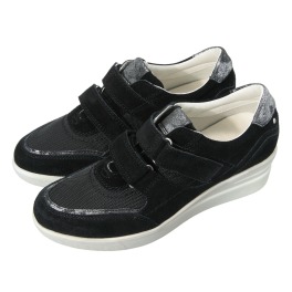 リラックスシュー山羊革ダブルベルトデザインウェッジヒールサンダル
