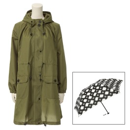ダブリューピーシー共布収納袋付レインモッズコート&晴雨兼用軽量折りたたみ傘