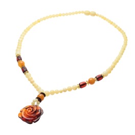 ヨーロピアン・アンバーマルチカラーアンバーローズモティーフネックレス