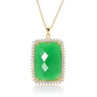ラウンドカボションの本翡翠をセンターに1石配し、その周りにCZをあしらった、シンプルでクラシカルなペンダントです。