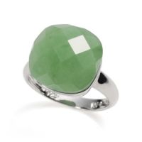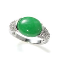ラウンドカボションの本翡翠をセンターに1石配し、その周りにCZをあしらった、シンプルでクラシカルなリングです。