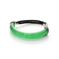 本翡翠でお作りした、ハーフドームデザインのブレスレットです。 本翡翠の両端には、シルバーのデザインパーツをはめ込みました。
