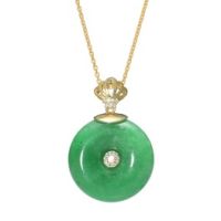 サークルを描く本翡翠を1石あしらい、CZを添えたペンダントです。 古代帝国で用いられていたような、アンティークジュエリーをモティーフにデザインしました。