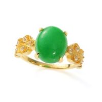 オーバルカボションの本翡翠1石とホワイトトパーズをあしらい、ヴィクトリア朝のジュエリーをイメージしてお作りしたリングです。