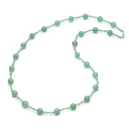 異なるサイズの本翡翠のビーズをメインにあしらい、シルバーのボールパーツでアクセントをつけたロングネックレスです。