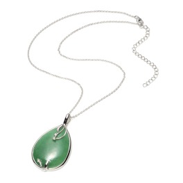 シルバーの枠に大ぶりの本翡翠をあしらい、ホワイトトパーズをアクセントに添えた上品なドロップデザインのペンダントです。