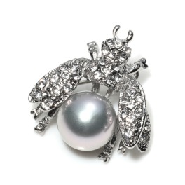 プレミアムパール貝パール&クリスタルガラスミツバチモティーフブローチ