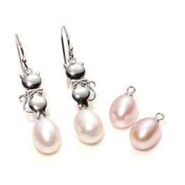 ホワイト&ラベンダーカラー淡水パールチャーム付キャットモティーフアレンジピアス