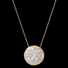 ダイヤモンドに換算すると合計で約3.79カラット相当のCZ(スワロフスキージルコニア)をパヴェセッティングでふんだんにあしらったサークルペンダントです。
