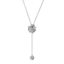 シルバーエンパイヤカットCZ&スワロフスキージルコニアフロントスライドロングネックレス
