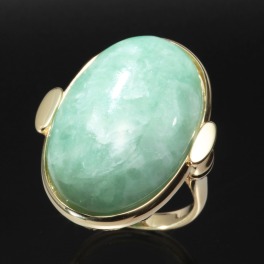 貴煌本翡翠オーバルカボションバンブーモティーフリング