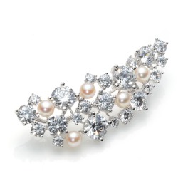 シルバースワロフスキージルコニア&ベビーアコヤパールミックスペンダントブローチ