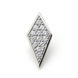 “スワロフスキー社”の持つ技術を駆使してマシンカットをほどこしたCZ(スワロフスキージルコニア)を、ロンバスシェイプの地金に細かくセッティングしたピンブローチです。