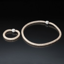 カラーチェーンメッシュ CZボリュームネックレス&ブレスレットセット