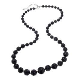 彩花シルバー ジェット&ブラックオニキスグラデーションばらロングネックレス