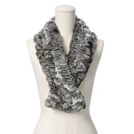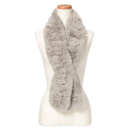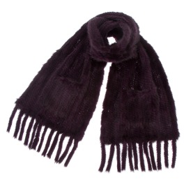 長さのあるフリンジがあしらわれたミンクヤーンストールです。軽くて暖かく柔らかいミンクファーをテープ状に裁断し、ネットに編み込んで仕上げました。