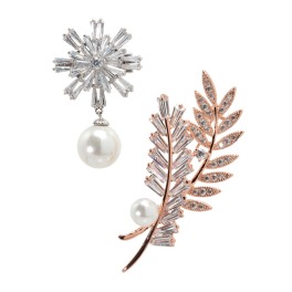 ヌール・ロンドンCZ&貝パール&パールビジュウメダリオン&リーフモティーフブローチ2個セット