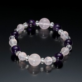 エンプレスジュエリーローズクォーツ&アメシスト&ロッククリスタルクォーツイラスティックブレスレット